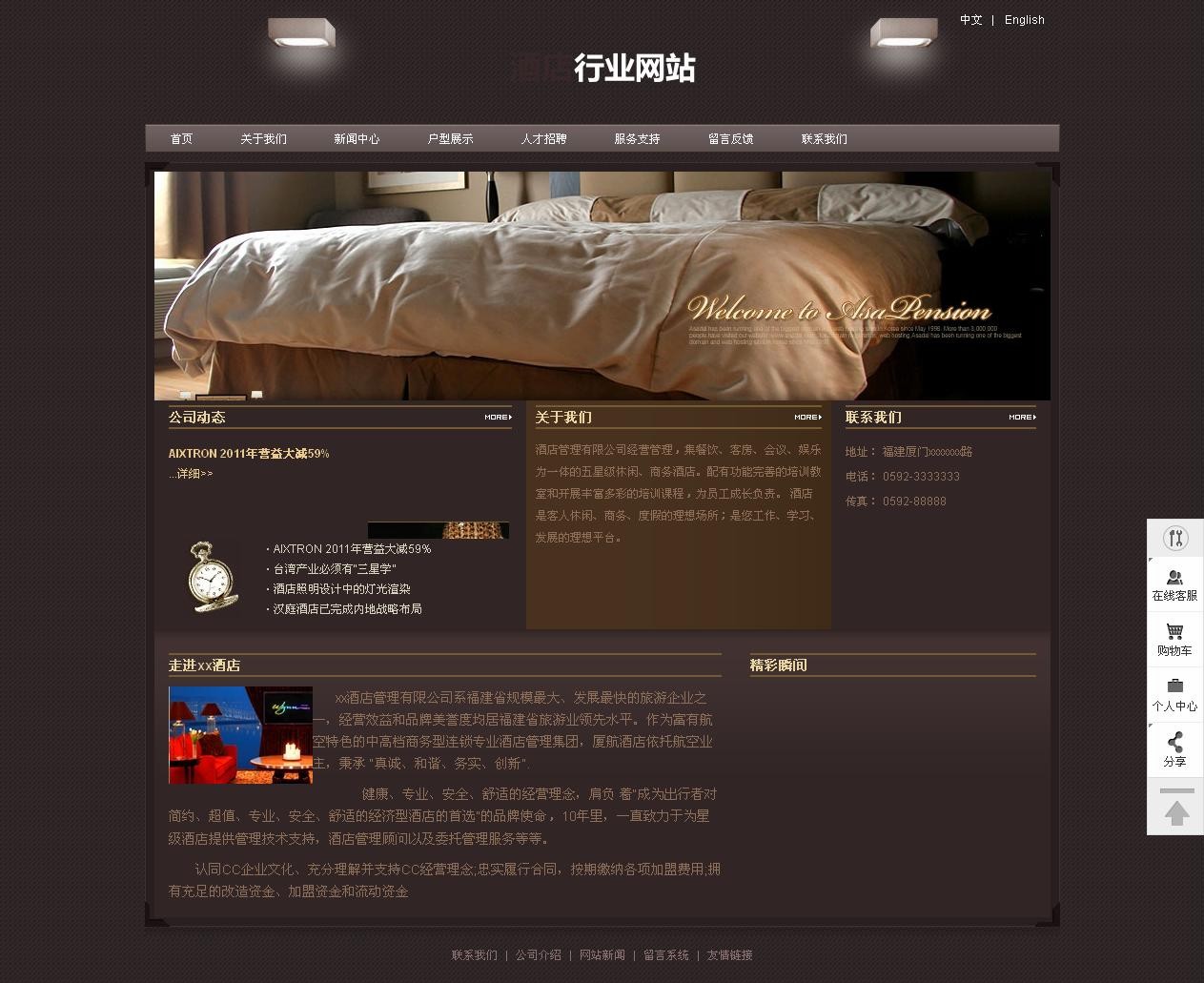 xx酒店管理有限公司系福建省規(guī)模最大、發(fā)展最快的旅游企業(yè)之一,經(jīng)營效益和品牌美譽(yù)度均居福建省旅游業(yè)領(lǐng)先水平。作為富有航空特色的中高檔商務(wù)型連鎖專業(yè)酒店管理集團(tuán),廈航酒店依托航空業(yè)主,秉承 “真誠、和諧、務(wù)實(shí)、創(chuàng)新”.